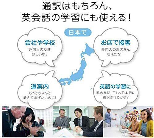 海外旅行先や店舗等での簡単な会話翻訳デバイス。
